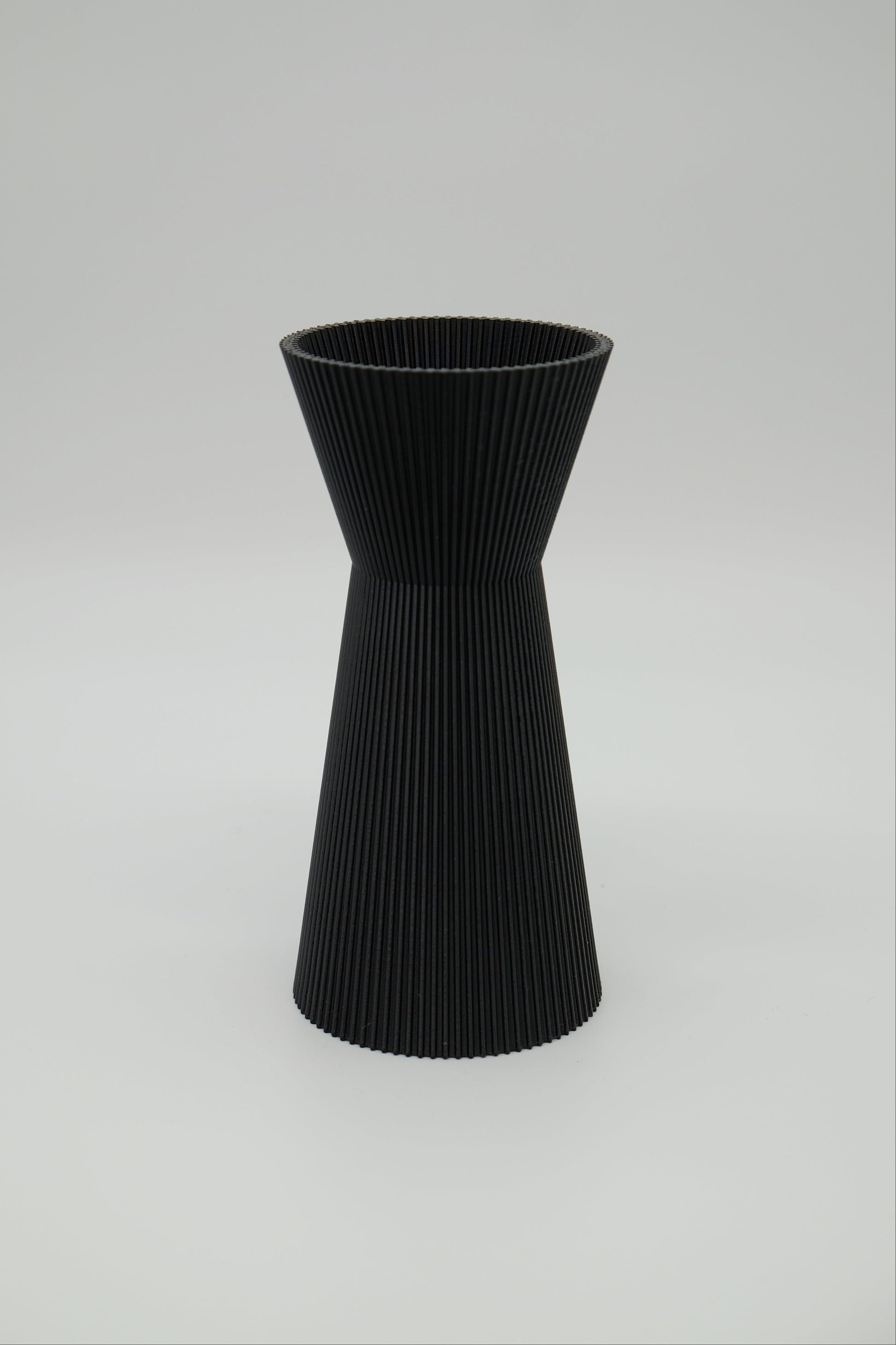 Blicke fängt diese Vase vor allem durch ihre feinen, vertikalen Rillen ein, die das Licht sanft brechen. Das einzigartige Merkmal der gesamten Kollektion haben wir auch hier integriert: Die Rillenstruktur läuft innen und außen durchgängig über die Oberfläche. Dieses doppelte Rillenspiel erzeugt eine faszinierende Tiefe.
